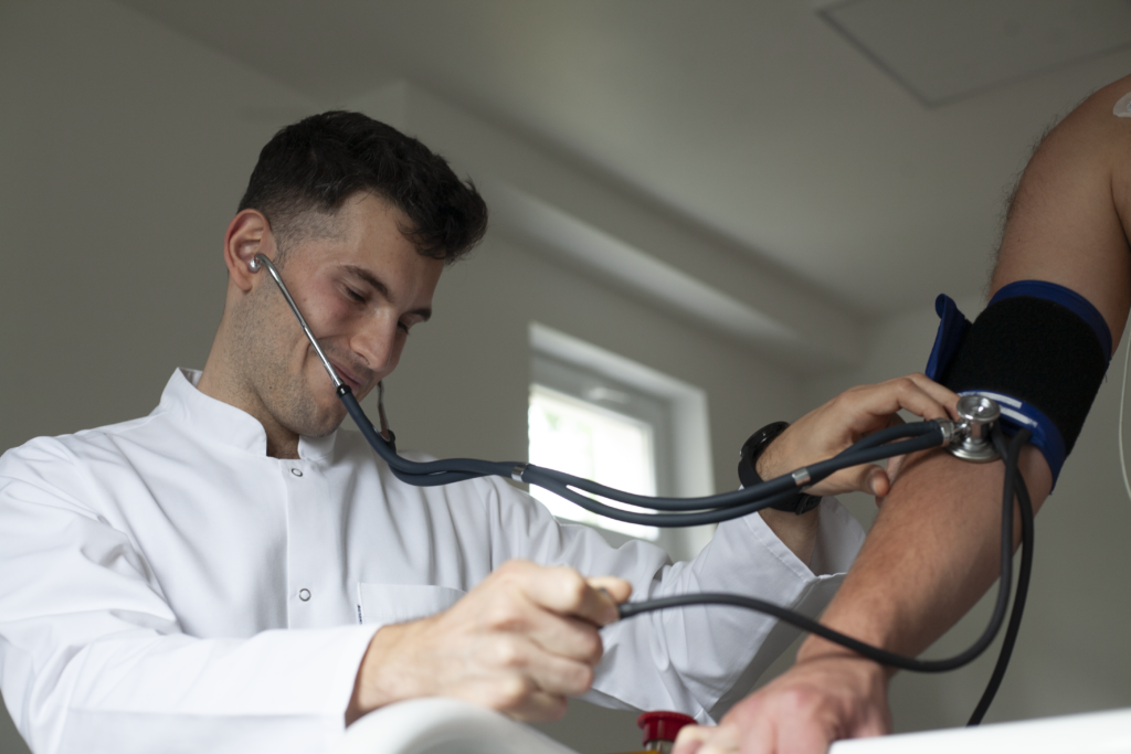 z mankietem umieszczonym na ramieniu. Badanie jest bezpieczne, bezbolesne i nie ogranicza codziennej aktywności.