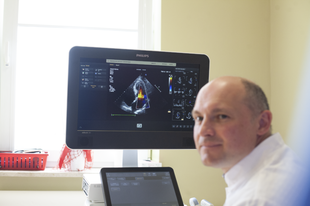 i funkcji serca, w tym pracy zastawek, mięśnia sercowego oraz dużych naczyń. Badanie umożliwia diagnostykę m.in. nadciśnienia tętniczego, choroby wieńcowej, wad zastawkowych oraz innych schorzeń układu krążenia. Jest całkowicie bezpieczne, nieinwazyjne i nie wymaga przygotowania ze strony pacjenta. Wynik badania przekazywany jest w formie szczegółowego opisu zgodnego z aktualnymi wytycznymi.