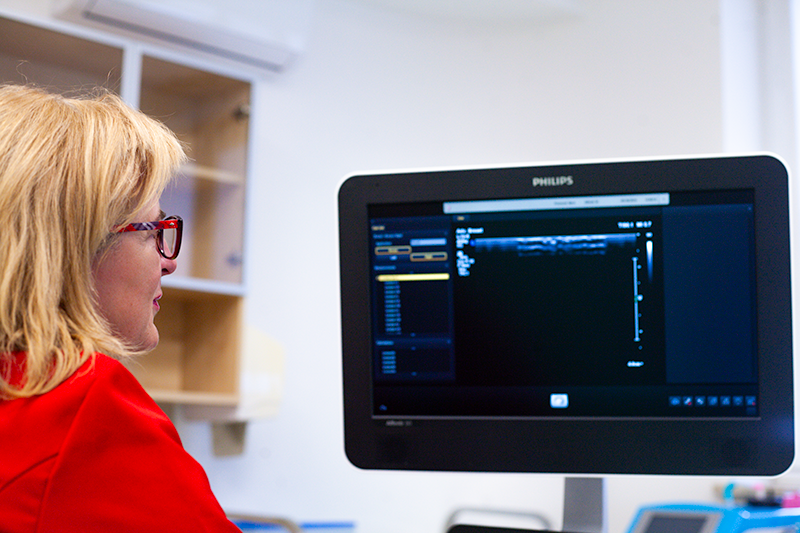 USG piersi jest całkowicie bezbolesnym i bezpiecznym badaniem wykonywanym przy użyciu fal ultradźwiękowych. Nie wymaga specjalnego przygotowania i może być przeprowadzane w dowolnym dniu cyklu miesiączkowego, również u kobiet w ciąży. Badanie pozwala na ocenę struktury gruczołu piersiowego, szczególnie u kobiet z gęstą tkanką gruczołową, a także na różnicowanie zmian litych
